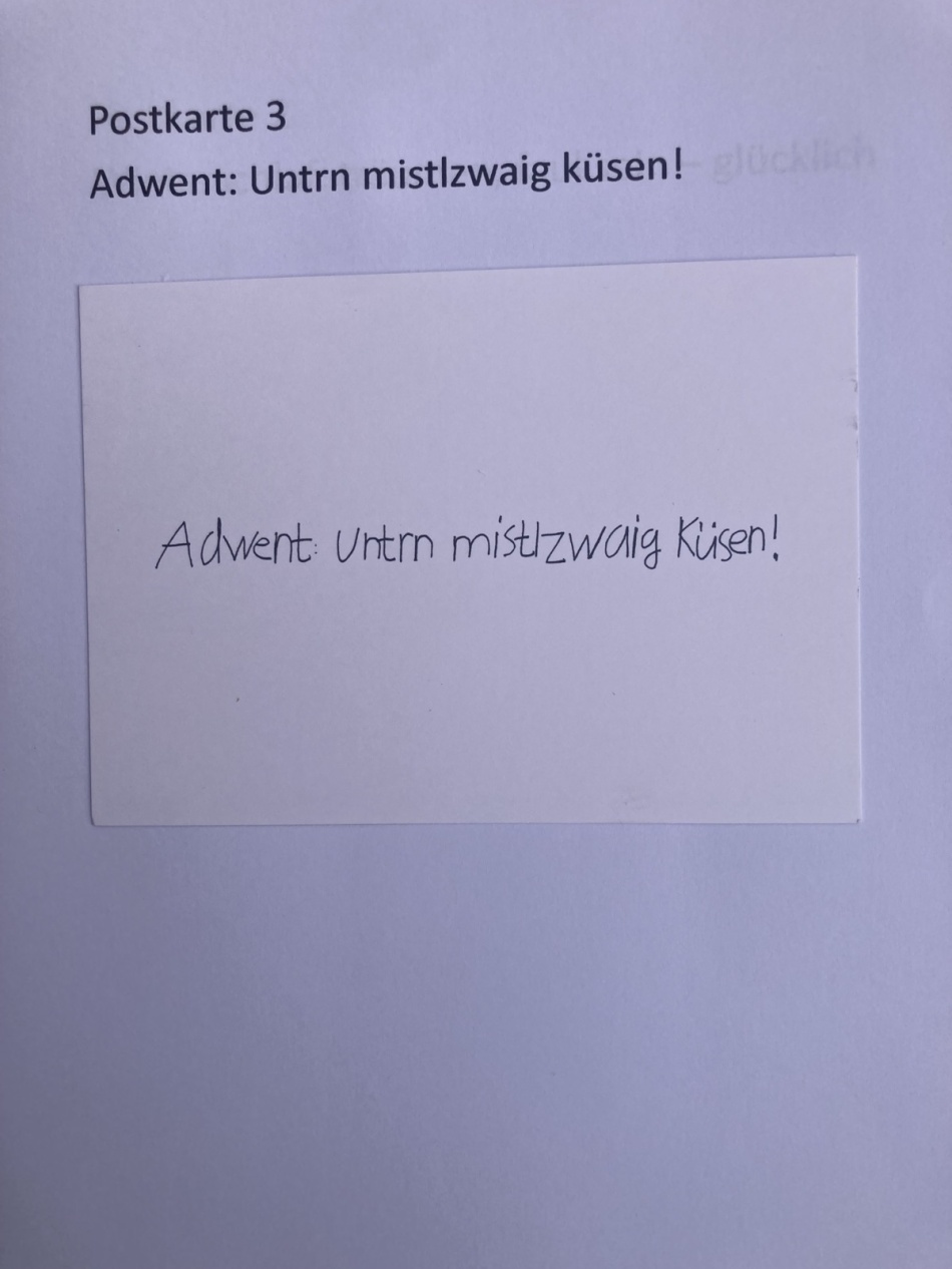 Einzelpostkarte "Adwent: Untrn Mistlzwaig küsen!".