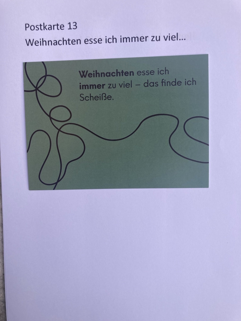 - Weihnachten esse ich immer zuviel - das finde ich Scheiße